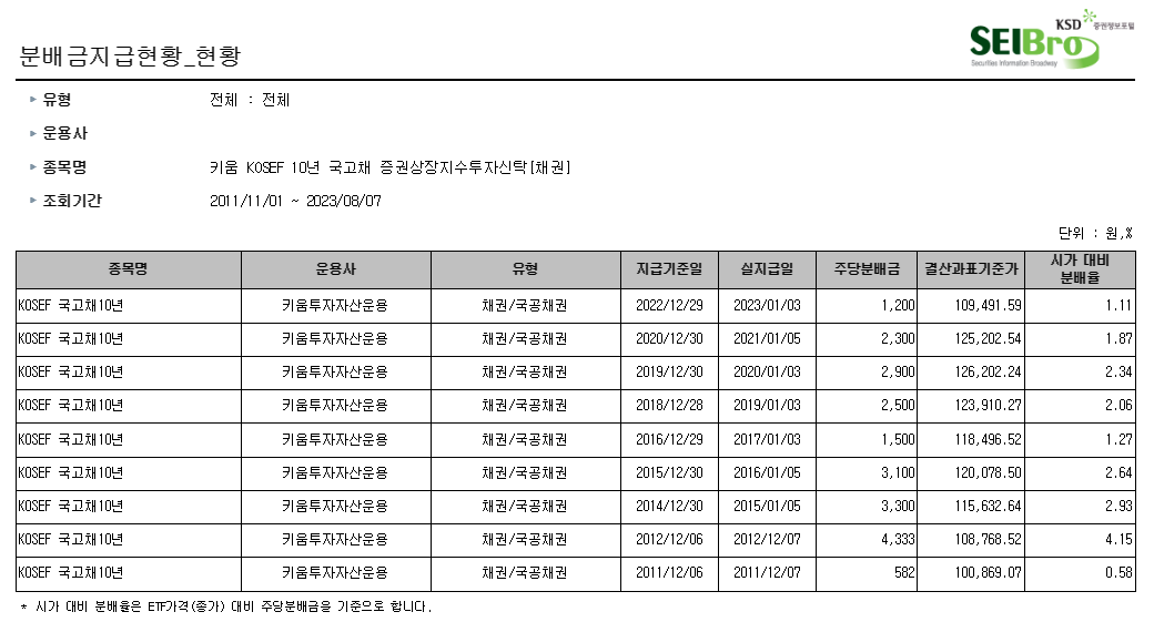- 기초지수 : KIS KTB 10Y Index(TR)
