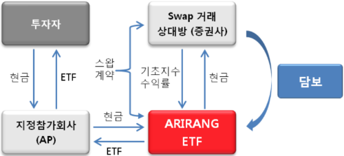 - 종목구성 : 각 증권사의 스왑거래 계약으로 구성됨
